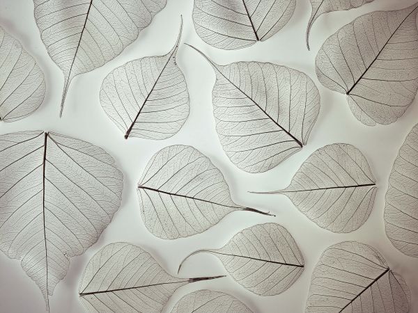 Verschillende soorten bladeren, het is net alsof de bladeren opgepakt kunnen worden.