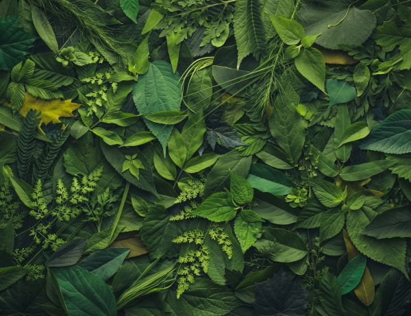 Een afbeelding van groene verschillende bladeren gefotografeerd van bovenaf.