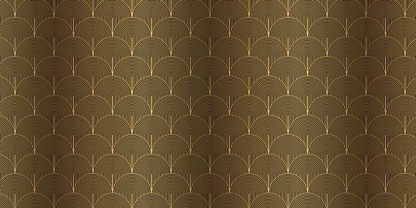 Een zwart-goud patroon in art deco stijl. In dit patroon zit een optische illusie waardoor het lijkt alsof de figuren de muur uit komen.