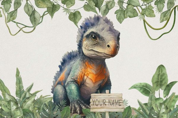 Een baby ankylosaurus in de jungle. Ook verkrijgbaar met naam van je kind!