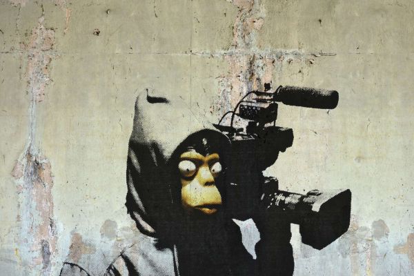 Fotobehang - Banksy - ETTGS monkey, raw concrete