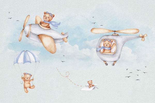 Vrolijke en kleurrijke beertjes maken plezier in de lucht. Dit behang is perfect voor de baby of kinderkamer.