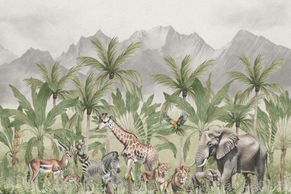 Ontdek de majestueuze schoonheid van de natuur met ons jungle berglandschap behang. Het gedetailleerde ontwerp vangt de essentie van een safari-avontuur, terwijl de weelderige begroeiing en imposante bergen een gevoel van rust en sereniteit toevoegen aan elke ruimte. Breng de wildernis bij jou thuis en creëer een atmosfeer van avontuur en verwondering met ons behang!