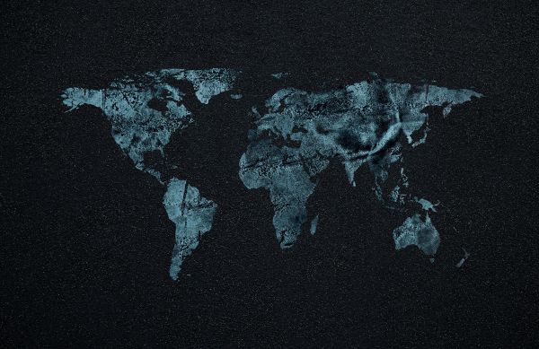 Blauwe wereldkaart op fotobehang. Combineer dit fotobehang in jouw woning voor nog meer sfeer.