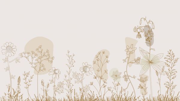 Bloemenveld getekend beige en natuur kleuren in verschillende materialen