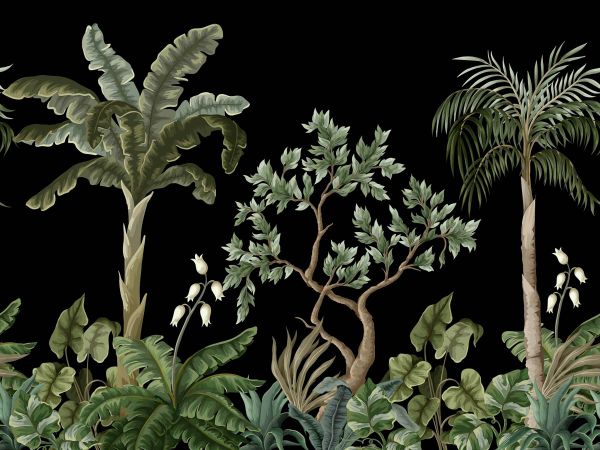 Fotobehang van een jungle landschap met palmbomen. Combineer dit fotobehang in bijvoorbeeld de slaapkamer.