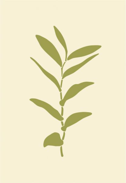 Een minimalistische tekening van een bruine plant op een licht achtergrond.