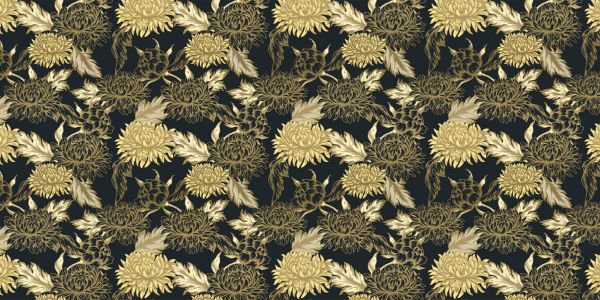 Chrysanten in Chinese stijl op fotobehang. Door de kleuren heeft dit fotobehang een luxe uitstraling.