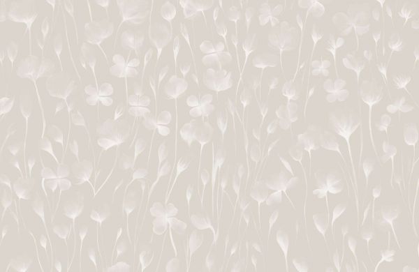 Een verfijnd en luchtig bloemenpatroon in zachte crèmetinten. De delicate bloemen en sierlijke stelen lijken subtiel te zweven tegen een lichte achtergrond, wat zorgt voor een rustgevende en romantische uitstraling. Perfect voor een serene en tijdloze sfeer in elk interieur.