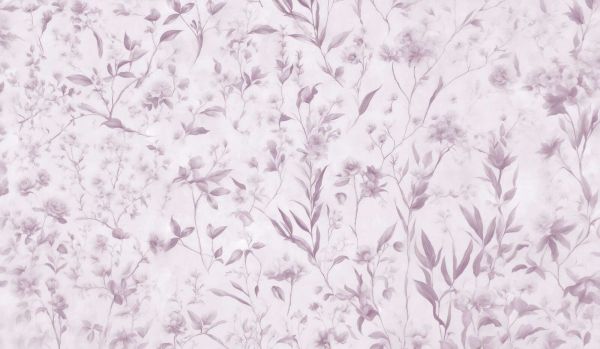 Een poëtisch bloemmotief in zachte lavendeltinten met subtiele lila en zilvergrijze accenten. De verfijnde bloemblaadjes stralen een serene en verfijnde sfeer uit.