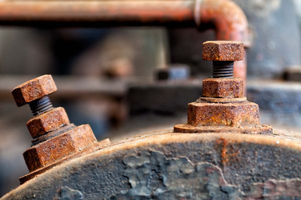 Detail van een verroeste stoomketel (B)