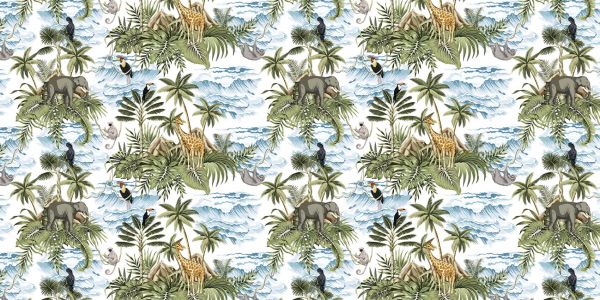 Een patroon van dieren tussen bladeren. Combineer dit fotobehang in jouw woonkamer of slaapkamer.