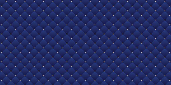 Donkerblauw fotobehang met een chesterfield look en geel gekleurde knoopjes.