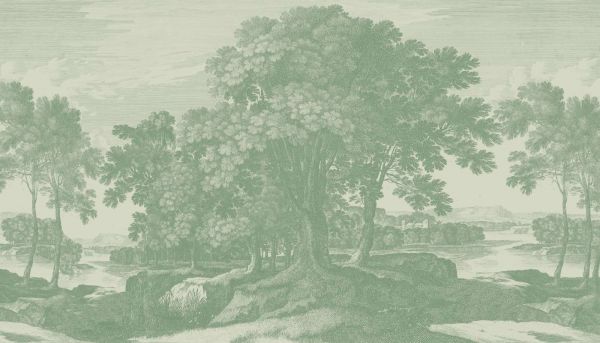 Dit landschapsontwerp is ideaal voor ruimten zoals woonkamers, studeerkamers of slaapkamers, waar een rustige en kalmerende sfeer gewenst is. Het zachte kleurenschema en het gedetailleerde patroon zorgen ervoor dat het een subtiele, maar opvallende toevoeging is aan elke ruimte.