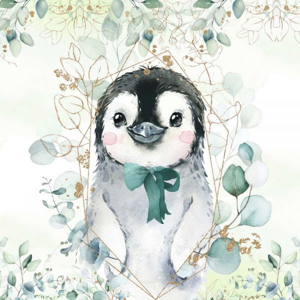 Prachtig behang met een schattige kleine pinguïn met een mooi strikje.