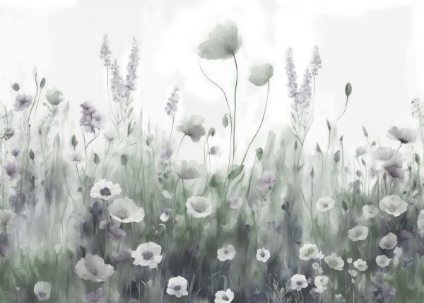Diepe, donkere groentinten geven dit aquareldesign een weelderige en mysterieuze uitstraling. De bloemen contrasteren op een intrigerende manier met de rijke achtergrond, waardoor het geheel zowel rustgevend als indrukwekkend oogt.Deze combinatie van donkere tinten en zachte accenten past bij interieurs die een warme, gezellige sfeer willen uitstralen.