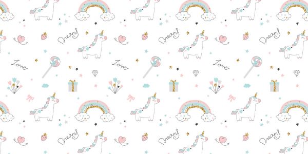 Fotobehang - Eenhoorns, regenbogen en glitters
