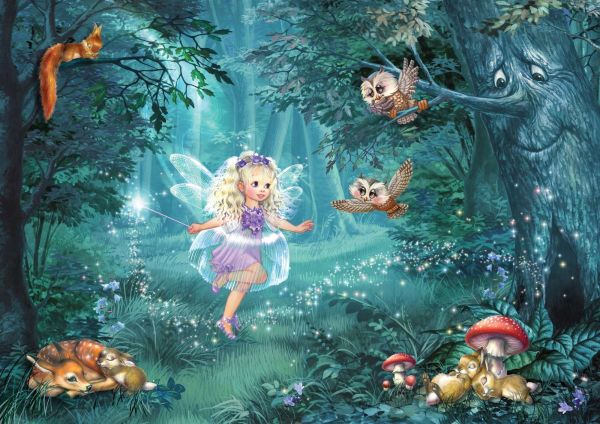Dit sprookjesachtige ontwerp vangt de magie van een betoverd bos waarin een sierlijke fee met vlindervleugels centraal staat. Ze straalt een zacht licht uit terwijl ze met haar toverstaf de bosomgeving tot leven brengt. Het tafereel is gevuld met vriendelijke bosdieren, waaronder nieuwsgierige uilen, een speelse eekhoorn en slapende hertjes en konijntjes, die samen een harmonieuze en vredige sfeer creëren.