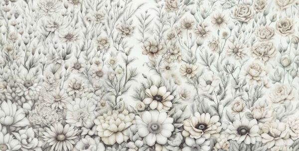 Dit romantische bloemenmotief omarmt de rust en warmte van neutrale tinten. De fijne details van de bloemblaadjes en het subtiele kleurverloop tussen beige, crème en zacht bruin geven het ontwerp een zachte, almost vintage uitstraling. Deze ingetogen kleuren zorgen voor een kalm en harmonieus geheel, dat perfect past in een breed scala aan interieurstijlen.
