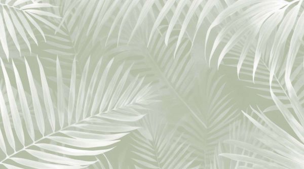 Met zijn zachte schakeringen van frisgroen, olijfgroen en mint creëert dit palmenontwerp een levendige en natuurlijke uitstraling. De subtiele gelaagdheid van de bladeren en lichte mistachtige effecten geven een gevoel van frisheid, rust en harmonie. Dit ontwerp brengt een vleugje natuur en levendigheid in huis zonder de ruimte te domineren.