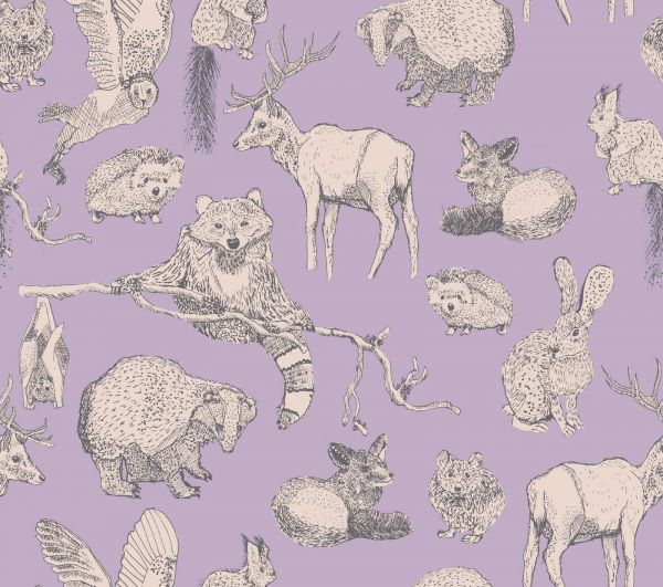 Dit ontwerp vangt de essentie van een levendig bos vol charmante dieren in een unieke, handgetekende stijl. Van nieuwsgierige wasberen en sierlijke herten tot schattige egels en sierlijke uilen, elk dier is met zorg en precisie geïllustreerd. Het patroon is opgebouwd in zachte sepia- en bruintinten, wat een warme en tijdloze uitstraling creëert. De subtiele lijnen en nostalgische tekenstijl geven een speels maar verfijnd karakter dat zowel kinderen als volwassenen aanspreekt.