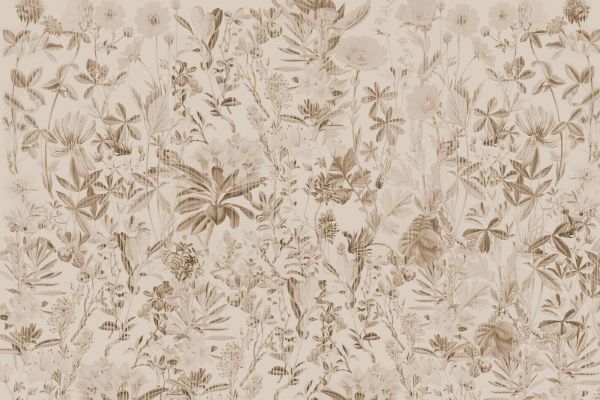 Dit verfijnde ontwerp toont een verzameling botanische illustraties in lichte sepia-tinten, waardoor een rustige en warme uitstraling ontstaat. De delicate details van bloemen en bladeren geven het ontwerp een vintage karakter, terwijl de lichte sepia-kleuren zorgen voor een zachte en uitnodigende sfeer. De harmonie tussen de gedetailleerde botanische vormen en de warme achtergrond maakt dit ontwerp tijdloos en veelzijdig.