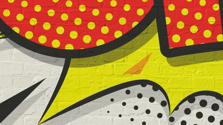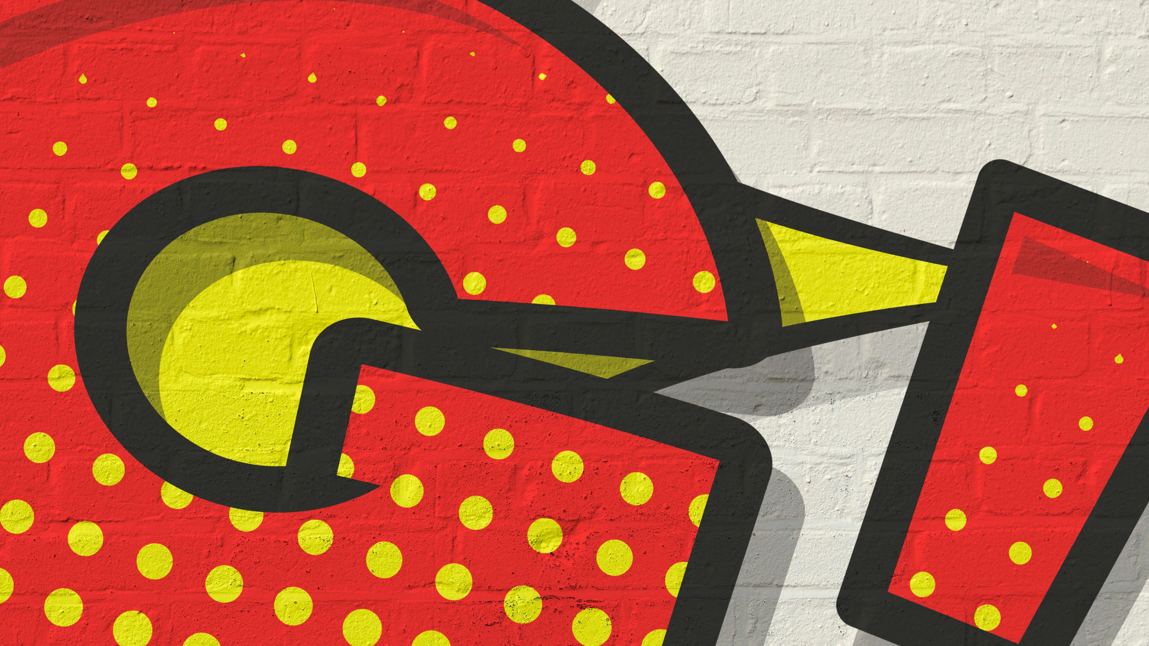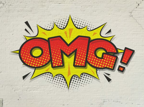 Gekleurde graffiti met de tekst ''OMG'' op een muur. Door de rode en gele kleuren valt deze graffiti goed op.