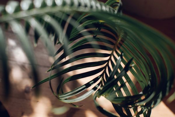 Een close-up afbeelding van een plant met gekrulde bladeren.