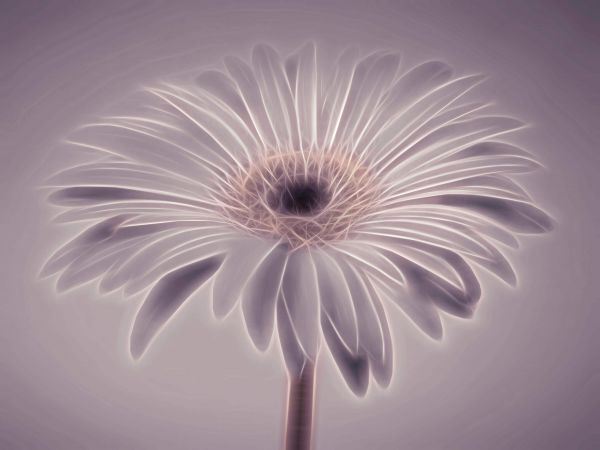 Een Gerbera bloem met een paars en wit effect. Combineer dit fotobehang in jouw huis voor nog meer sfeer.