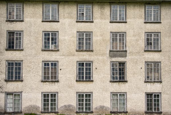 Een gevel van een oude fabriek. Met dit fotobehang creëer je direct een industriële sfeer in huis.