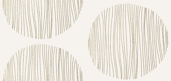 Dit ontwerp bestaat uit een regelmatig patroon van cirkels die zijn opgebouwd uit fijne, verticale lijnstructuren. De lijnen in warm goudbeige contrasteren subtiel met de lichte achtergrond, waardoor een verfijnd grafisch effect ontstaat. De combinatie van strakke vormen en handgetekende lijnvariatie geeft het geheel een moderne uitstraling met een zachte, natuurlijke ondertoon.