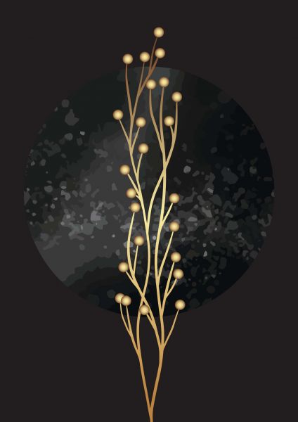 Een geïllustreerde goud-gele plant op een licht zwarte achtergrond.