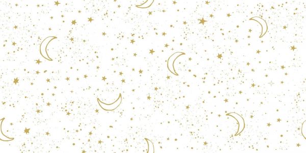 Een verfijnd patroon van gouden maansikkels en fonkelende sterren op een lichte achtergrond. De subtiele spatten en speelse vormen zorgen voor een dromerige en rustige sfeer.