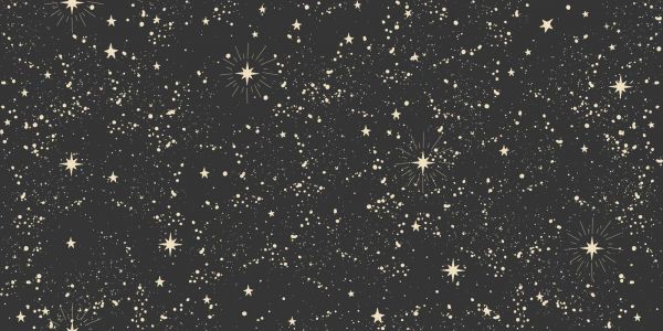 Dit ontwerp vangt de betovering van een heldere nacht vol fonkelende sterren. Op een diepe zwarte achtergrond verspreiden zich honderden kleine sterretjes, variërend van subtiele puntjes tot sprankelende sterrenexplosies met fijne stralen. De warme goudtinten contrasteren prachtig met de donkere basis en geven het geheel een elegante, bijna vintage uitstraling. Het patroon ademt sereniteit en magie, alsof je onder een eindeloze sterrenhemel staat.