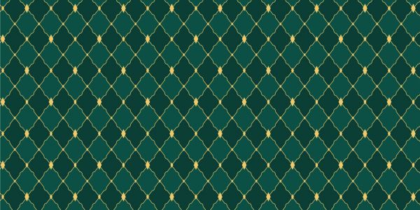 Groen fotobehang met een ruitjespatroon in twee groentinten met geel gekleurde lijnen.