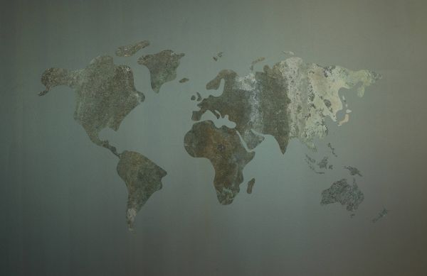 Mooie groene eenvoudige wereldkaart met structuur. Door de groene kleur geef je jouw ruimte nog meer sfeer met dit fotobehang.