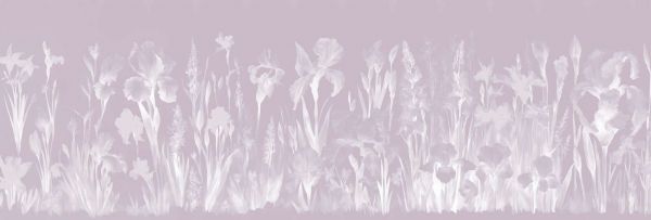 Deze dromerige variant geeft de illusie van een bloemenveld gehuld in een zachte mist. De kleuren zijn subtiel vervaagd, met een delicate balans tussen blauw, paars en geel, wat zorgt voor een rustgevende en mysterieuze uitstraling. De aquareltechniek wordt hier nog verfijnder toegepast, waardoor een bijna etherisch effect ontstaat.