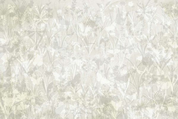 Een delicaat ontwerp waarin vlinders en kruidachtige bloemen samenkomen in een gelaagd spel van zachte pasteltinten. Het subtiele silhouet van flora en fauna creëert een serene en tijdloze sfeer.