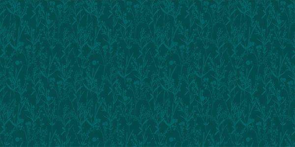 Een uniek patroon van verschillende bloemen, takken en bladeren die willekeurig verspreid zijn in de kleur teal.