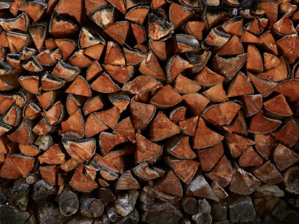Houtstapel in verschillende materialen