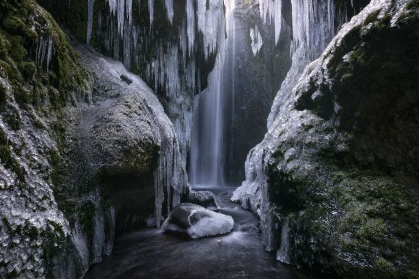 IJsland wordt doorkruist door diepe kloven waar watervallen doorheen bulderen. Deze kloven zijn een bijzondere ervaring in de winter, wanneer de bevroren nevel de wanden versiert met prachtige vormen en ijspegels.