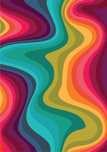 Een afbeelding van een jaren 60 print met veel kleuren. Combineer dit in bijvoorbeeld de slaapkamer.