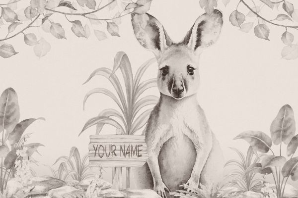 Jonge kangoeroe in de jungle beige in verschillende materialen