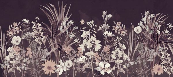 Een weelderig veld van bloemen in een overvloed van kleuren, van zachte pasteltinten tot diepe aardse tonen. Heldere gele zonnebloemen en delicate paarse bloesems combineren met fris groen gebladerte. Het ontwerp ademt vrolijkheid en brengt een levendig, zomers gevoel in elke ruimte.