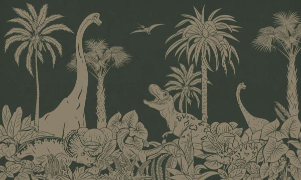 Fotobehang - Monochrome Dino - Green Vintage