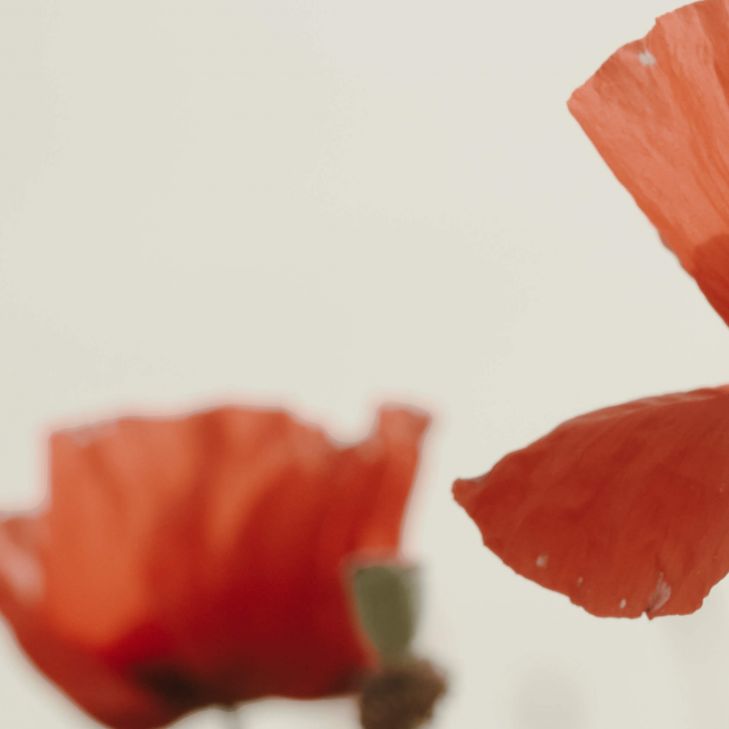 Een foto van een zijaanzicht van klaprozen. De foto heeft prachtige vintage kleuren.