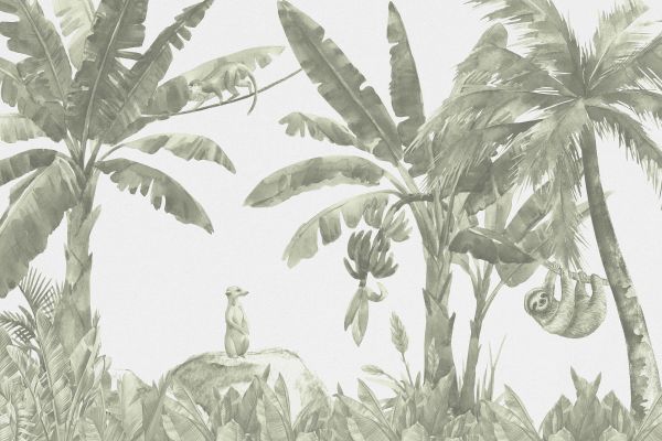 Fotobehang - Kleine jungle dieren in groen