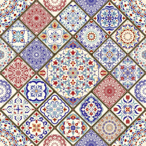 Behang van kleurrijk patchwork in Turkse stijl. Een mooi patroon dat voor meer sfeer in huis zorgt.