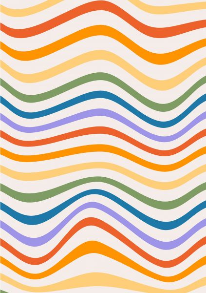 Fotobehang van een jaren 60 print met regenboogkleuren. Combineer dit in de slaapkamer.