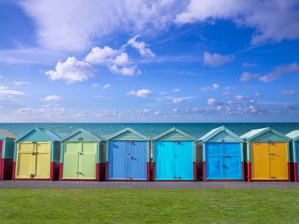 Kleurrijke strandhuisjes op fotobehang. Met dit fotobehang breng je nog meer kleur in huis.